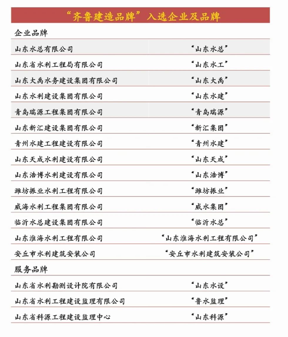 近日,山东省住房和城乡建设厅正式公布2025年第一批“齐鲁建造”品牌榜单,公司凭借过硬的技术实力、卓越的工程品质与高效的综合管理,成功入选企业品牌类榜单,成为全省17家获此殊荣的水利企业之一,彰显了公司在行业内的标杆地位。